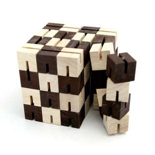 Snake cube: The string of bi-color wooden cubes form a Hamiltonian path through a 3×3×3 grid. Build your skill and patience as you twist the snake of 27 cubes back into its’ original 3x3x3 cube. This brain-teasing puzzle’s difficulty is legendary!
