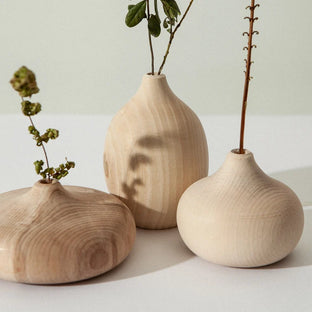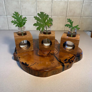 Each piece is crafted from solid wood and paired with a removable glass vial, making it both functional and decorative. Perfect for desks, shelves, windowsills, or as a thoughtful gift for plant lovers.