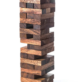 This beautiful handmade version of the classic family game challenges players to remove the blocks one by one and place them at the top of the tower. As the game progresses, the construction becomes weaker and weaker until an unlucky player removes a key block and the whole tower tumbles down!